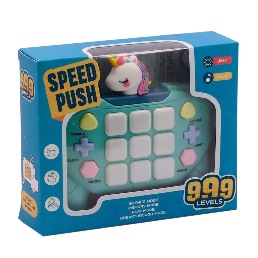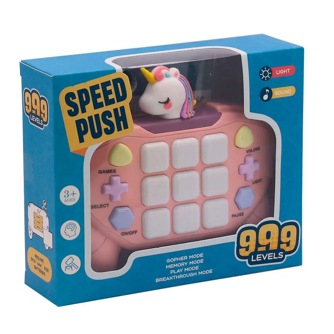 Un juego super dinámico para que los peques se diviertan sin parar. Esta consola de empuje con diseño de dinosaurio incluye luces y sonidos que se activan durante el juego, incentivando la coordinación, la concentración y la reacción rápida. Ideal para entretener en casa, en el