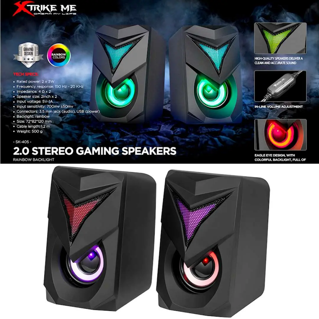 Llevá tu setup gamer al siguiente nivel con estos parlantes compactos, potentes y con luces RGB. Un diseño moderno para acompañar tus partidas con estilo y buen sonido.