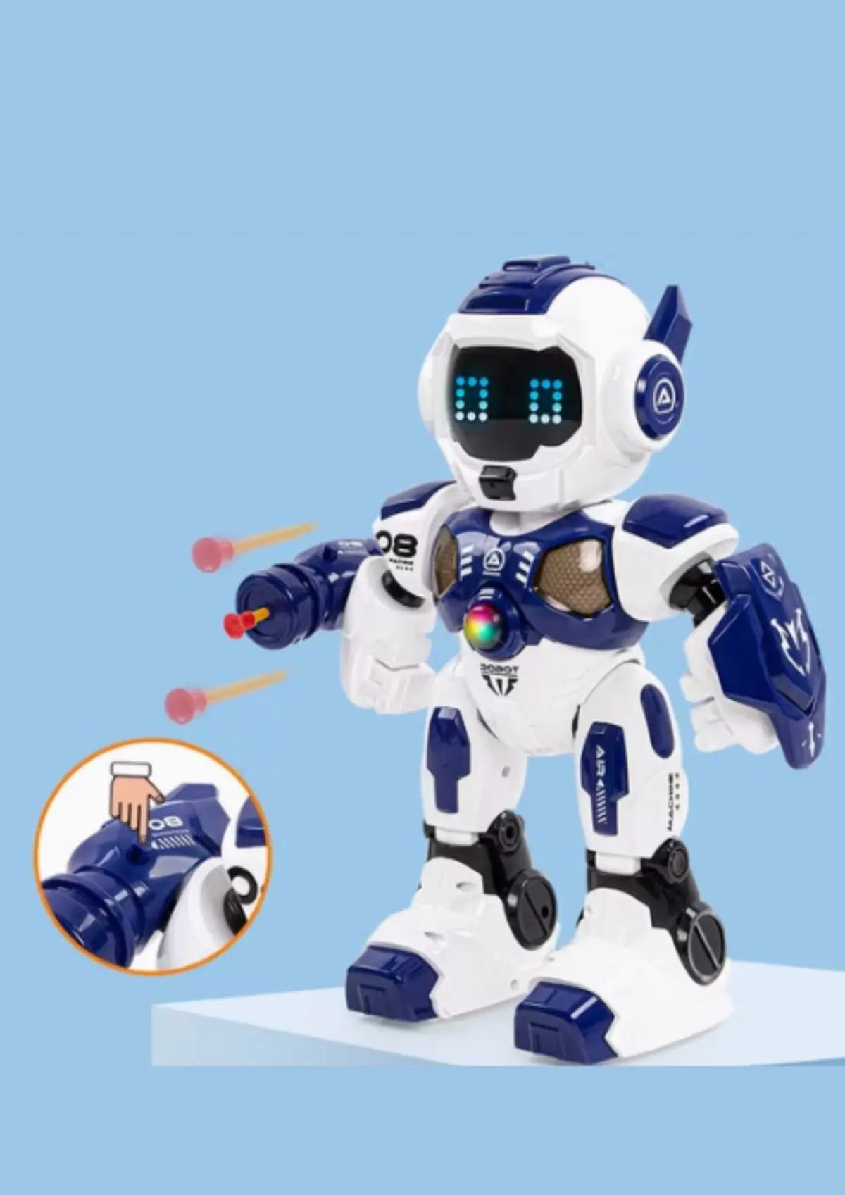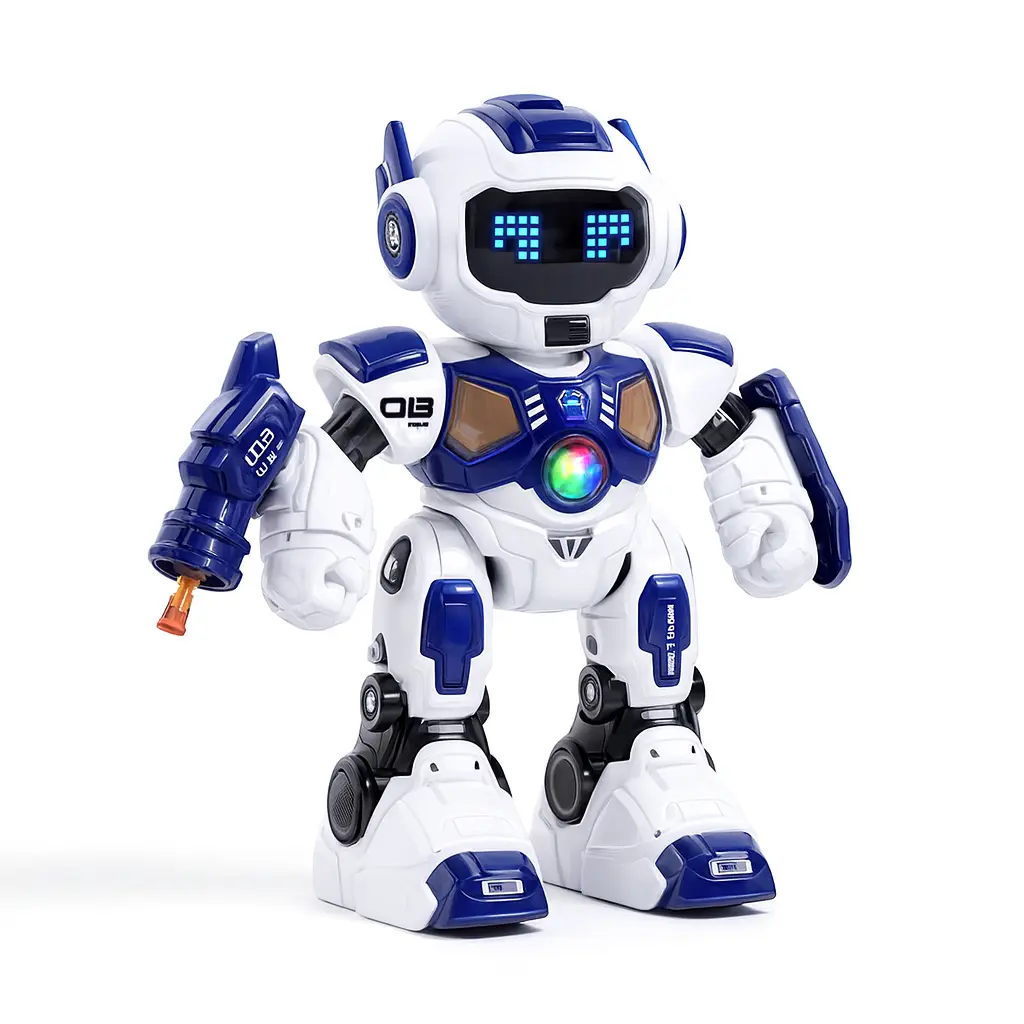 Descripción:Robot interactivo de 30 cm con movimientos programables, luces y sonido. Responde a comandos del control remoto, camina, gira y realiza acciones divertidas, ideal para estimular la imaginación y el juego creativo.